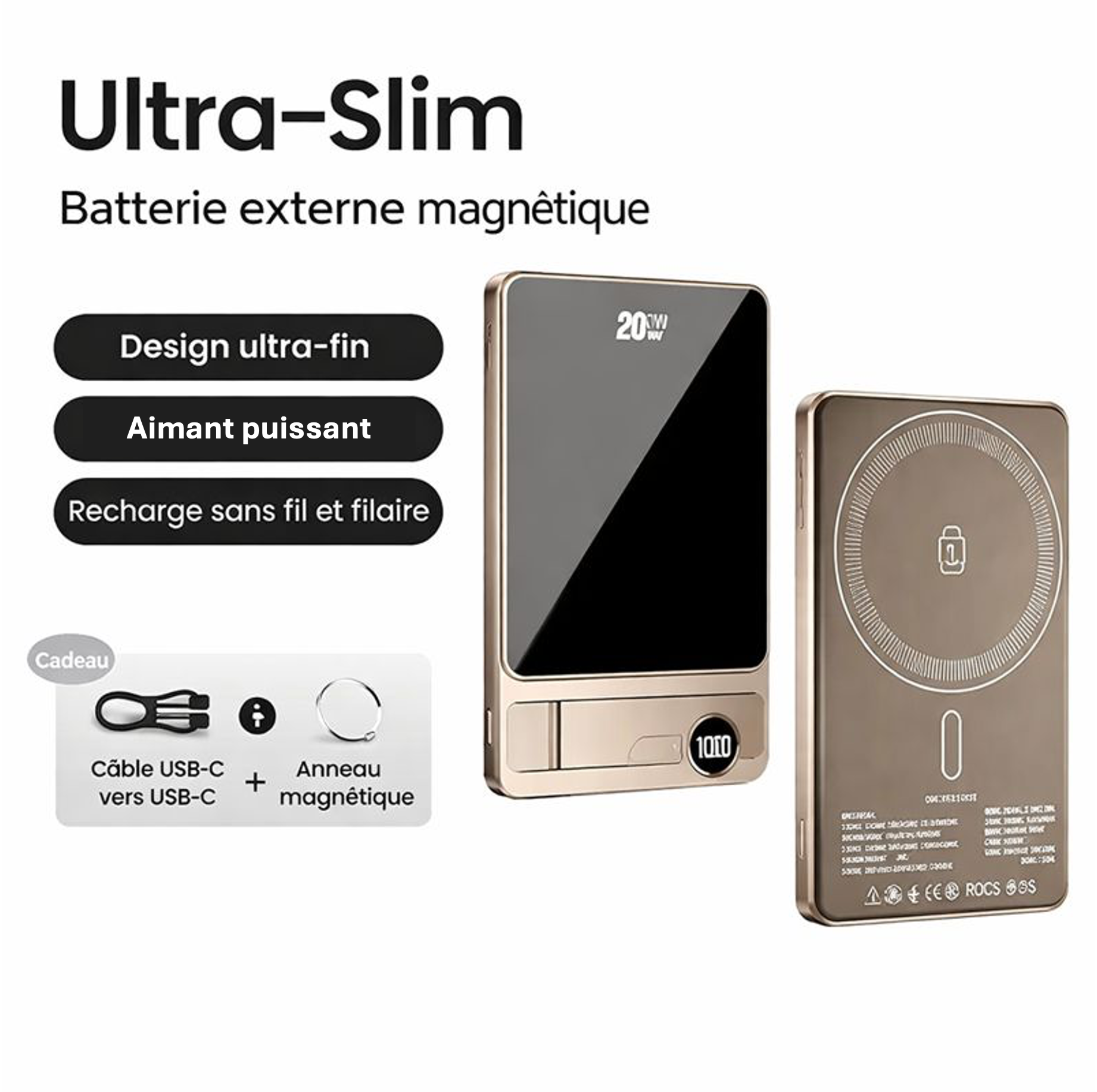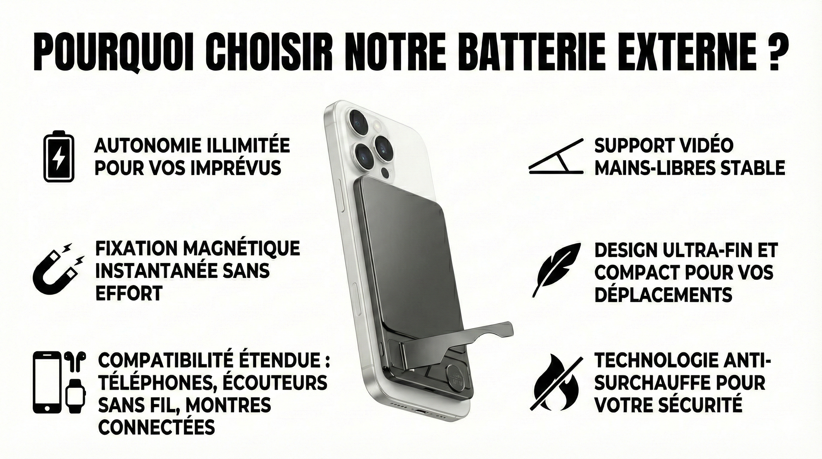 Commandez votre power bank magnétique Power 20 et profitez :